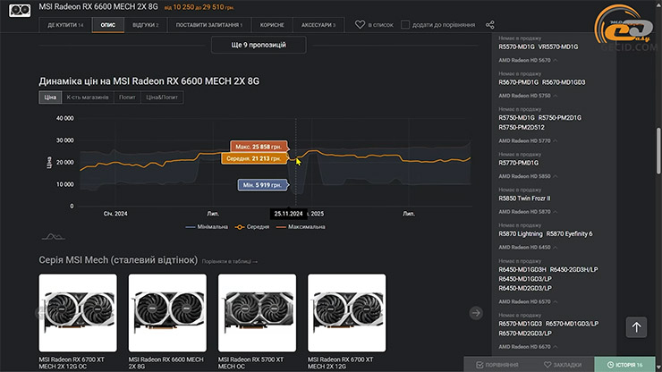А якщо Вас зацікавить така відеокарта чи інша на RX 6000, або ж з’явиться бажання обрати новіший графічний прискорювач на будь-який смак, то в рішенні цієї задачі допоможе український каталог описів, цін та порівнянь — E-Katalog. Тут є безліч можливостей по фільтрації характеристик товарів, детальні описи та відгуки користувачів, динаміка цін та попиту і багато чого іншого. Все, щоб Ваш вибір був упевненим на 100%. Адже відсортувати позиції можна навіть по вазі, а для фільтрів є швидший пошук потрібного.