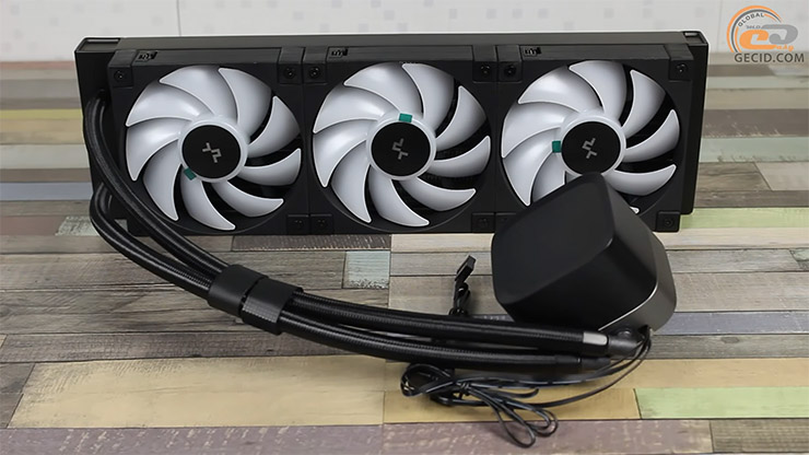 За охолодження процесору відповідає 360-мілімітрова система рідинного охолодження DeepCool LP360, в основі якої лежить високоефективна помпа з робочою швидкістю до 3400 об/хв. Вона забезпечує стабільний відвід тепла навіть під максимальним навантаженням. А три 120-мм вентилятори на гідравлічних підшипниках працюють зі швидкістю до 2400 об/хв, створюючи потужний повітряний потік. А завдяки ARGB-підсвічуванню вони ще й додають системі сучасного вигляду.