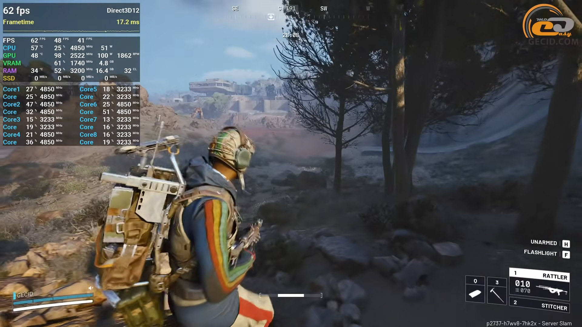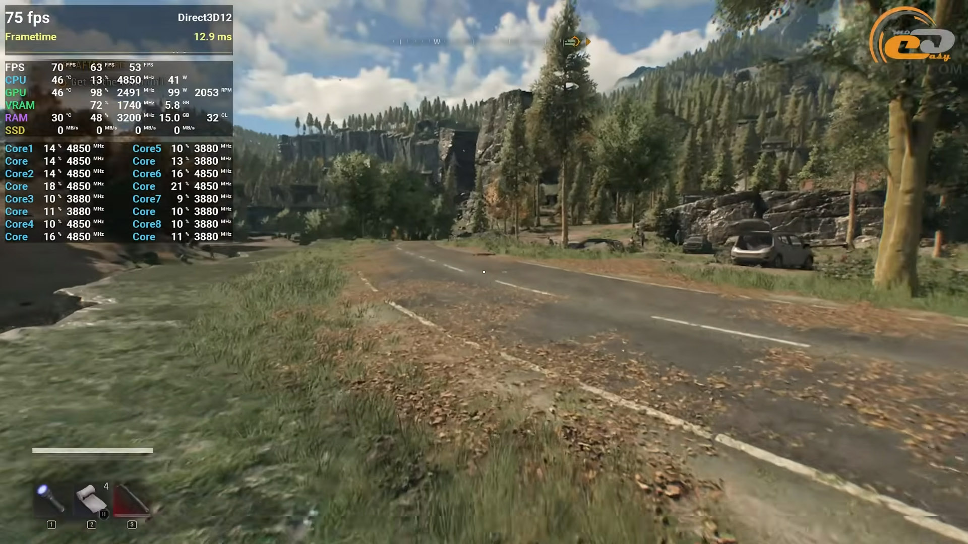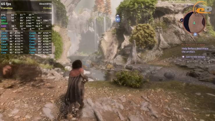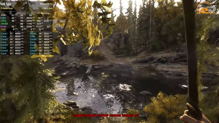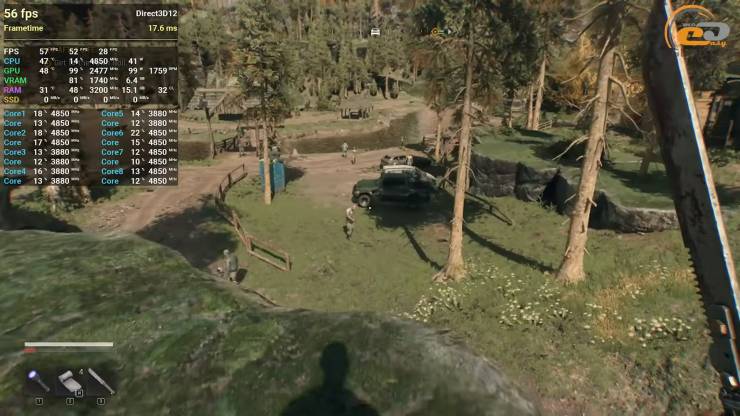 А от якщо спробувати перейти на ультра налаштування графіки і навіть увімкнути FSR у збалансованому режимі, що деколи вже помітно погіршує чіткість картинки, усе одно задача прискорювачу даватиметься важко. Тому частота кадрів майже завжди нижча за 60 із помітними просіданнями в таборах з купою NPC, що час від часу супроводжується неприємними посмикуваннями.