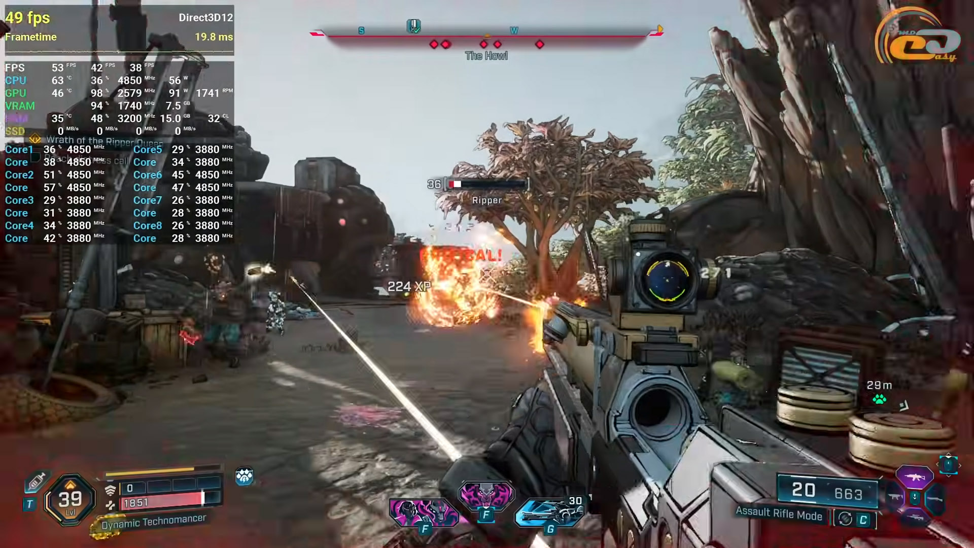 Досить важку Borderlands 4 можна спробувати бігати на середньому пресеті графіки з додаванням якісного FSR. Але, майже стовідсоткове навантаження на відеобуфер постійно дає про себе знати через короткі посмикування, викликанні нескінченним підвантаженням нових текстур, об’єктів чи ефектів. Тож у більш складних моментах ситуація може погіршиться, що майже гарантовано забезпечить негативні емоції.