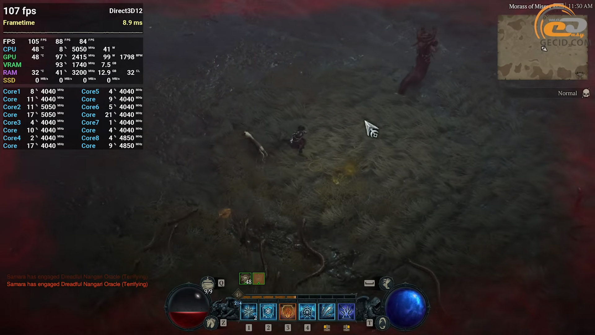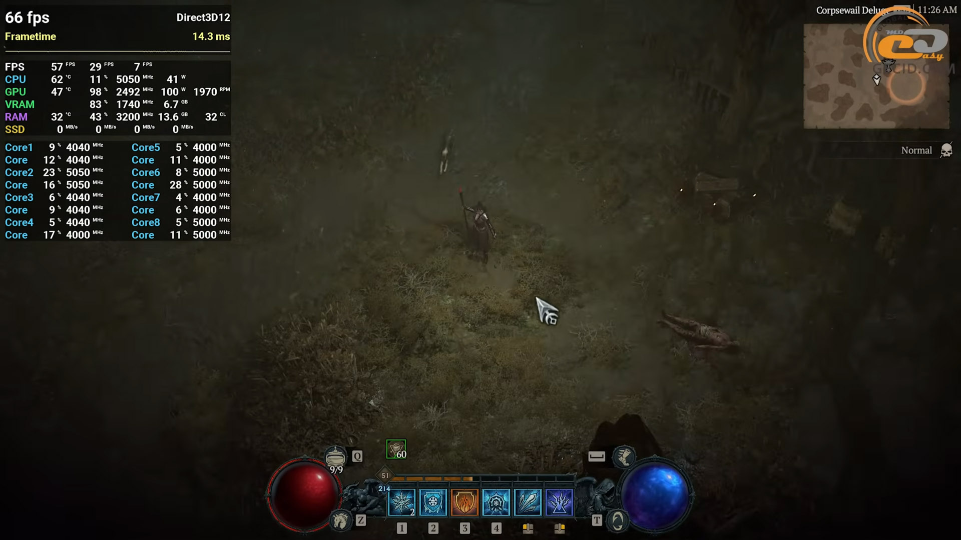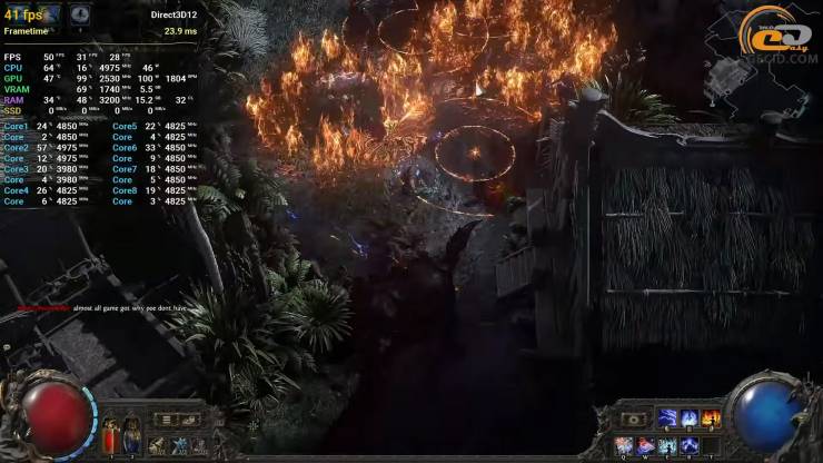 В Екшн-RPG Path of Exile 2 можна грати при майже усіх налаштуваннях викручених на високі, але для отримання умовно комфортного FPS доведеться тіні та глобальне освітлення перевести на рівень «Low». Останнє дозволить отримати приблизно 50 кадрів за секунду з просіданнями до 38-ми під час великої кількості ефектів від здібностей. Ці моменти не завжди відчуваються критичними але при бажанні їх можна уникнути через подальше погіршення глобальної якості картинки або через додання апскейлеру.