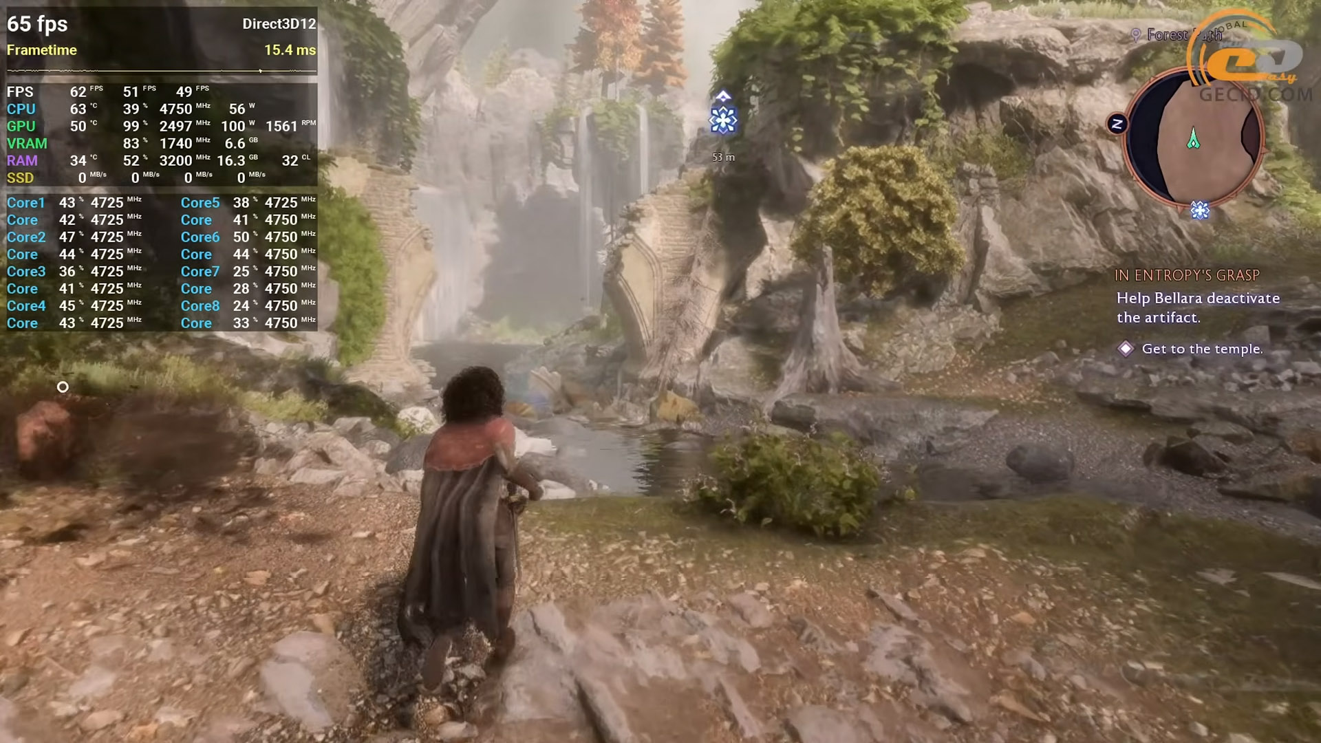 Трохи ситуацію рятує додавання генератору кадрів, що дещо погіршує якість зображення, але додає плавності. Так, незважаючи на показники моніторингу про майже подвоєну частоту кадрів, на ділі це так не відчувається. Проте все одно саме такі налаштування дозволяють грати на високій якості, уникаючи посмикувань.