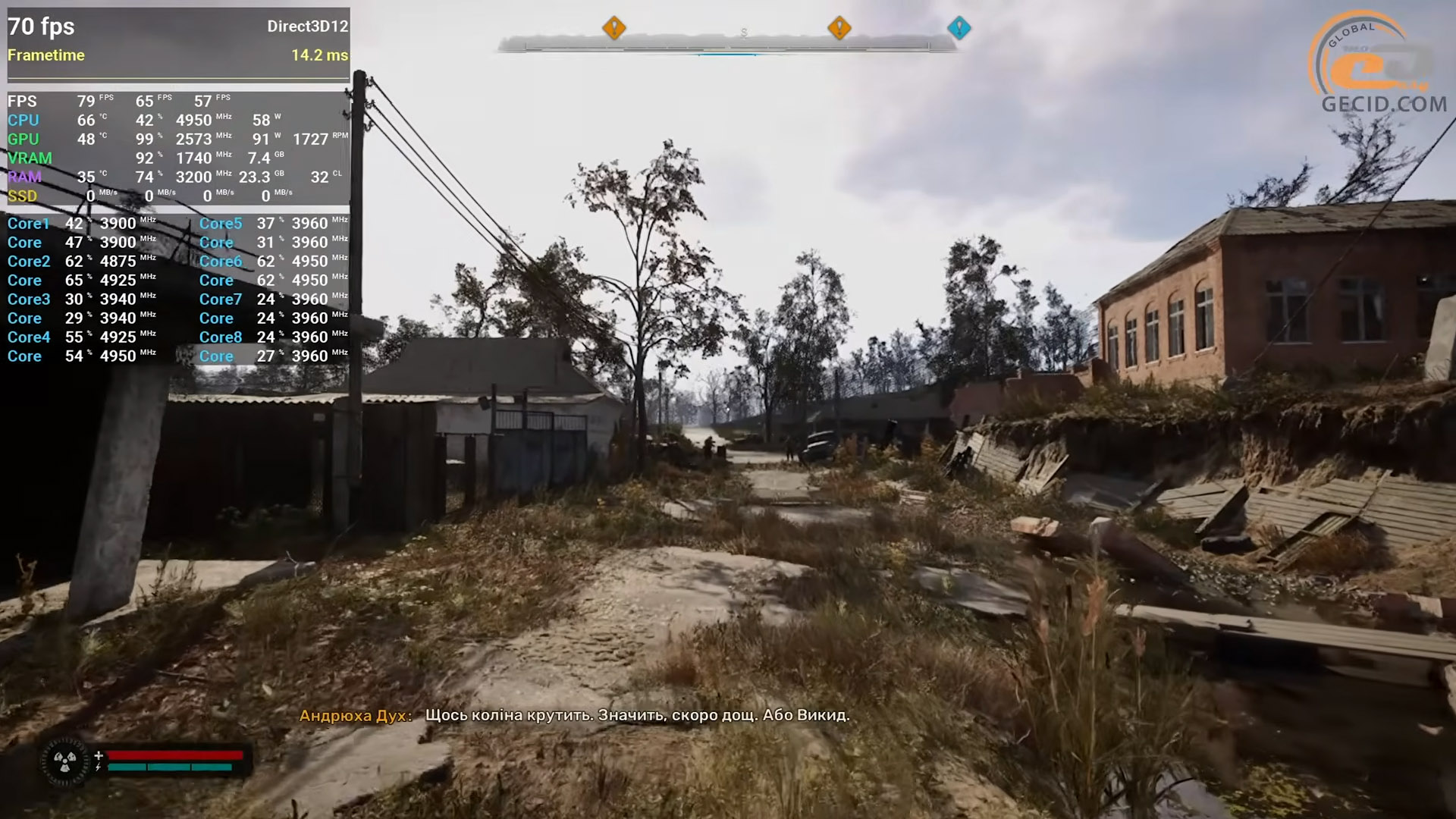 Для більш-менш стабільного та комфортного ігроладу на високих налаштуваннях графіки в усім відомому S.T.A.L.K.E.R. 2: Серце Чорнобилю доводиться застосувати режим апскейлінгу в режимі якості. Проте у населених пунктах частота кадрів падає нижче комфортної та зустрічаються невеликі підгальмовування.