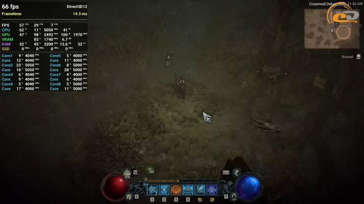 Якщо ж захочеться пройти Diablo IV також із трасуванням променів, то можна спробувати побігати на пресеті Ray Tracing Medium. Але, при активних бійках заважає не стільки частота кадрів, скільки періодичні та дуже помітні посмикування, які майже завжди присутні при активованому трасуванні променів на більшості систем — тож сильно піддослідний прискорювач не звинувачуємо.