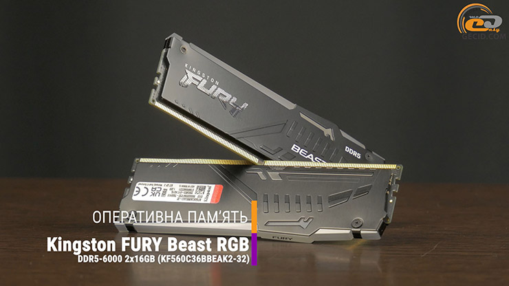 Як ОЗП використовувався яскравий комплект DDR5-6000 з двох 16-гігабайтних модулів Kingston FURY Beast DDR5 RGB, які ми розігнали до 6400 МТ/с з таймінгами 32-39-39 після збільшення напруги живлення до 1,4 В.