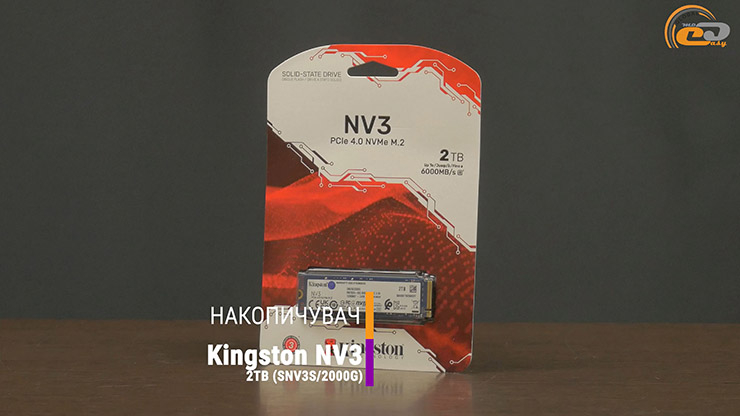 Для операційної системи та ігор ми обрали достатньо швидкий і відносно недорогий SSD-диск Kingston NV3 ємністю 2 ТБ. Цей небуферизований накопичувач дозволяє зчитувати дані на швидкості до 6000 МБ/с, а записувати – до 5000.