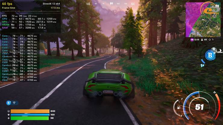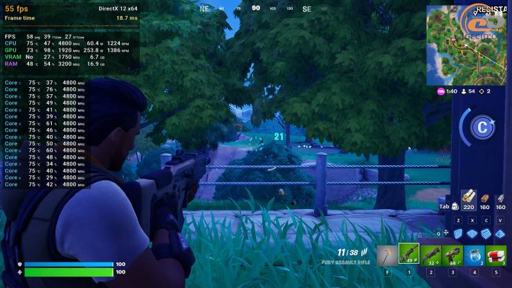 В легендарну королівську битву Fortnite можна грати і на епічному пресеті графіки. Але для отримання більш-менш плавної картинки потрібен аж збалансований режим апскейлінгу. Отже боротися за перемогу можна і в таких умовах, хоча під час важких сутичок або великої кількості будівель можуть очікуватися досить критичні просідання, які потягнуть за собою негативні емоції.