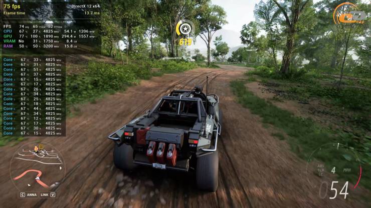 Поганяти у Forza Horizon 5 можна навіть на покращеному пресеті графіки Extreme та додаванням DLAA згладжування, щоб максимально поринути у атмосферу гонок по Мексиці. Середня частота кадрів становить приблизно 70, при цьому приємно, що ця частота кадрів ніяк не змінюється і не утворює посмикувань — тобто все ідеально.