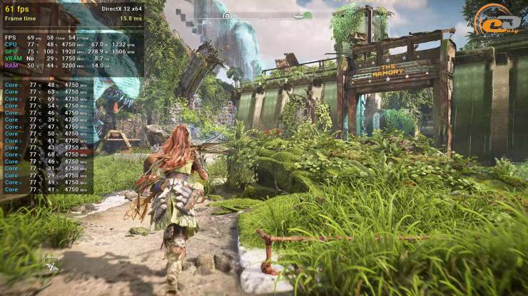 Завдяки достатньо великому відеобуферу, Horizon Forbidden West запускається на дуже високих налаштуваннях, а отримати ближчий до ідеального ігролад з частотою кадрів за 60 без просадок і посмикувань допомагає DLSS в режимі Quality.