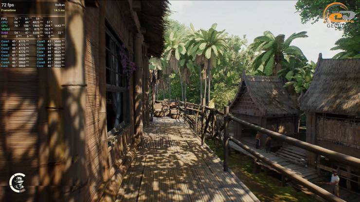 Запустивши найновішу частини саги Assasin’s Creed: Shadows на високих налаштуваннях та все ж використавши «якісний» режим масштабування, можна отримати цілком приємний ігролад. Так, інколи під час перебіжок через густу рослинність чи велику кількість NPC частота кадрів трохи просідає, але явно не до критичного рівня.