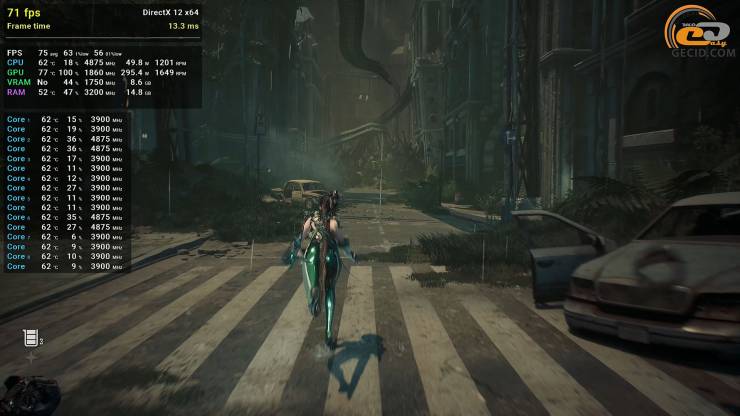 В Stellar Blade не стають перешкодою навіть дуже високі налаштування графіки з доданим згладжуванням DLAA. Героїня рубає усе на своєму шляху без будь-яких просідань чи інпутлагу, а FPS, у тому числі й завдяки достатньому обсягу VRAM, залишається вищим за мінімально комфортний поріг.