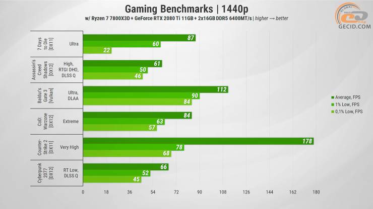 На момент свого релізу GeForce RTX 2080 Ti була флагманською відеокартою і справжнім проривом у світ трасування променів. Минуло вже майже сім років, а вона все ще дозволяє отримати задоволення від будь-якої нової гри, щонайменше у Full HD та Quad HD.