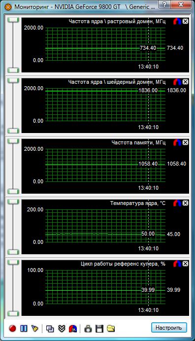 Частоту ядра вдалося збільшити до 734 МГц (+22,3%), максимальна частота шейдерного домену склала 1836 МГц (+21,4%), а частота пам'яті – 1058 МГц (+17,5%). Результат не найвищий, але, враховуючи встановлену систему охолодження, він гідний схвалення. Також звернемо увагу на те, що додатковий вентилятор дозволив ще більше знизити температуру графічного ядра – тепер вона склала всього 50 °С, і це при підвищених частотах! Це підтверджує необхідність розумної організації вентилювання системного блоку.
