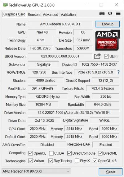 Такий дизайн чудово вписується у світлі корпуси з підсвіткою та додає системі охайного, «преміального» вигляду. Усередині ж — знайома архітектура RDNA 4, підсилене охолодження та заводський розгін від GIGABYTE. Тож саме час перевірити, чи поєднується краса цієї відеокарти з її реальною продуктивністю в іграх та комфортним рівнем шуму.