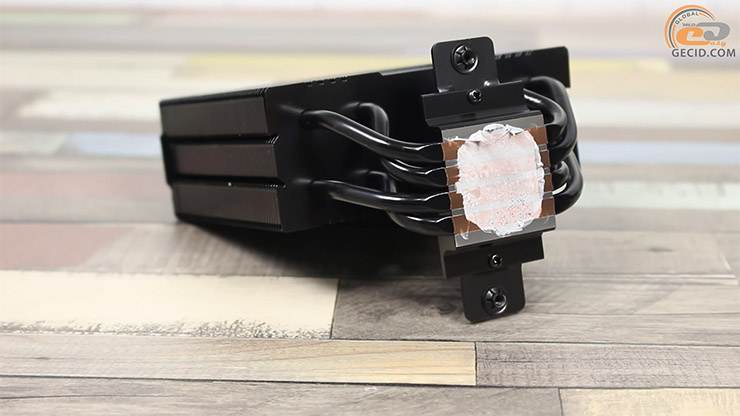 Повітряний потік проходить через радіатор із чотирма тепловими трубками, які напряму контактують із теплорозподільною кришкою процесора. За даними виробника, кулер здатен розсіювати до 190 Вт тепла, тобто для такого CPU, як Ryzen 7 7700, його повинно бути із запасом. А от наскільки ефективно він проявить себе на практиці — перевіримо згодом.