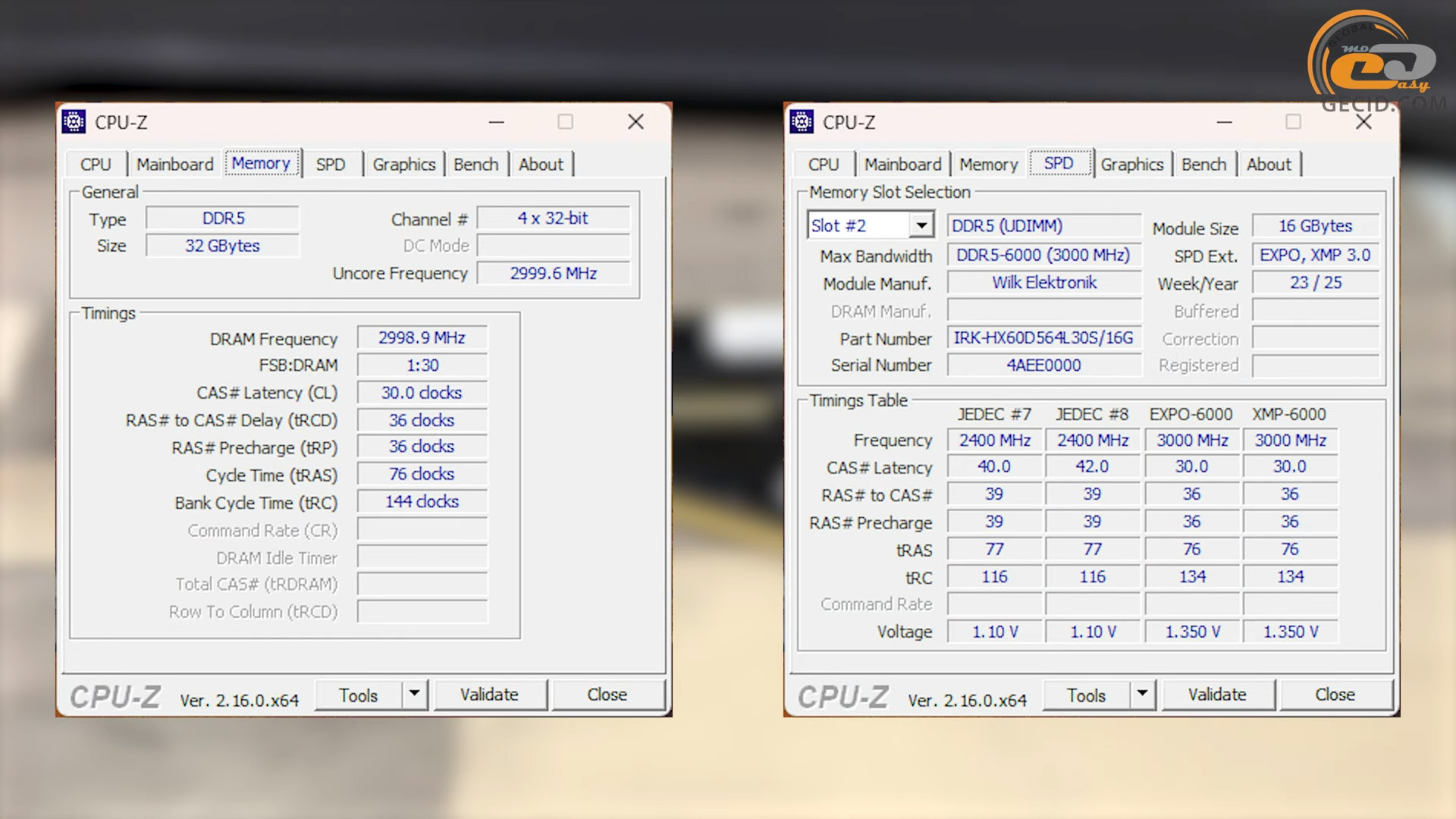 Модулі працюють на частоті 6000 МТ/с із доволі агресивними таймінгами CL30-36-36-76 при напрузі 1,35 В, а наявність EXPO-профілю дозволяє швидко активувати оптимальний режим роботи без зайвих налаштувань і з повною стабільністю.
