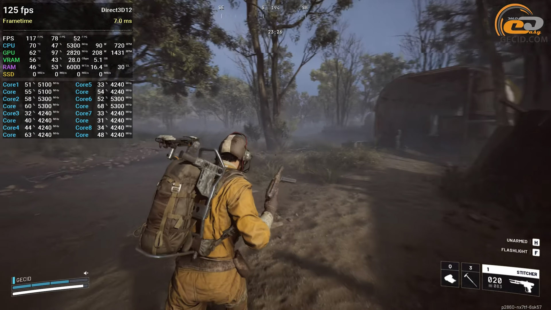 У свіжій PvPvE грі — ARC Raiders система виглядає дуже впевнено: максимальні налаштування із RTX глобальному освітлені на епічному рівні відтворюють насичену картинку з глибокими тінями. Середній FPS підбирається до 120-ти, що надасть достатнього запасу при динамічних перестрілках. Іноді проскакують легкі, майже непомітні посмикування, але вони не вибивають із ритму й на загальне враження практично не впливають. У цілому — дуже комфортний і плавний геймплей.