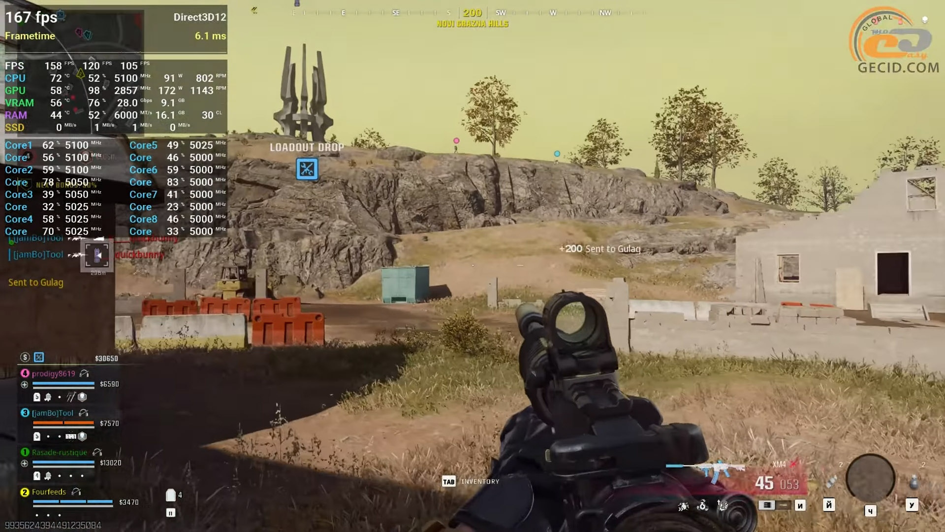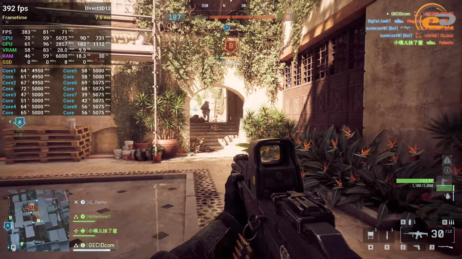 В Call of Duty можна собі ні в чому не відмовляти — під час заліку на екстремальних налаштуваннях середня частота зміни кадрів становить 162, а під час перестрілок чи активних перебіжок FPS не падає нижче рівня в 150 оновлень, що також є більш ніж достатнім результатом для комфортного ігрового досвіду. Тож продуктивність системи не завадить зайняти перше місце — все залежатиме лише від власних дій.