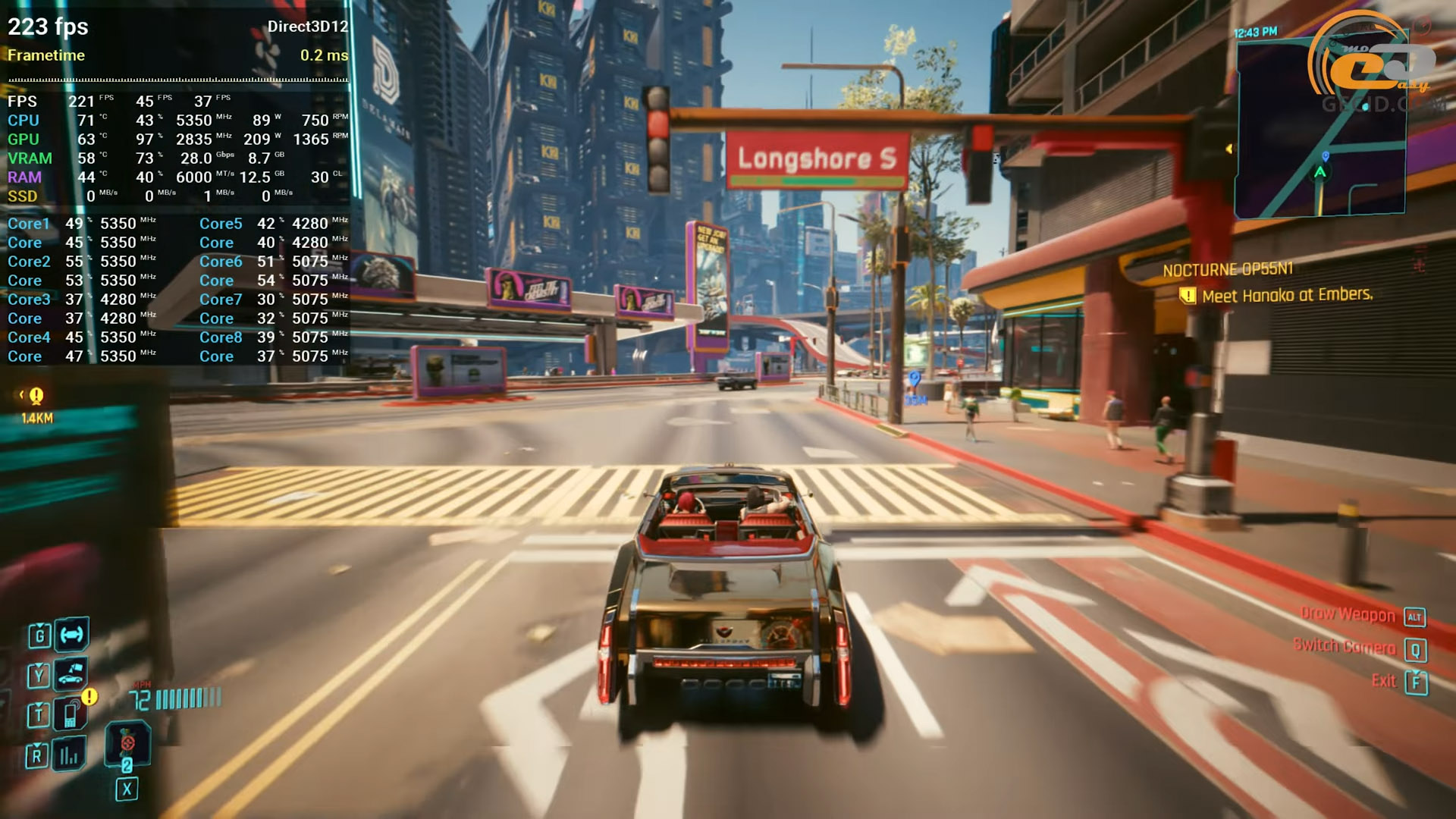 Витягнути достатню частоту кадрів за секунду на найважчому пресеті налаштувань RT Overdrive в Cyberpunk 2077 виходить лише з використанням якісного DLSS. Таким чином плавність ігроладу досягає умовно достатнього рівня, хоч подеколи і проскакують моменти коли на лічильнику середнього FPS можна побачити значення нижчі за 60.