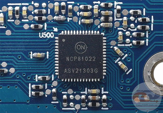 У якості ШІМ-контролера перетворювача живлення відеоядра виступає мікросхема NCP81022. На жаль, докладна технічна інформація щодо цього чіпа залишається закритою й досі, тому про якісь конкретні його особливості повідомити не можемо. Відзначимо лише, що він часто зустрічається як на «референсних», так і на модифікованих моделях AMD Radeon HD 7790.