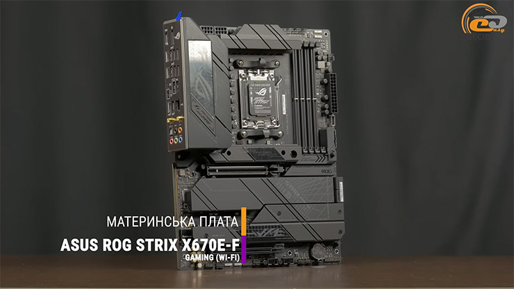 Працює цей процесор в надійній і ще досить актуальній материнський платі ASUS ROG STRIX X670E-F GAMING (WI-FI).