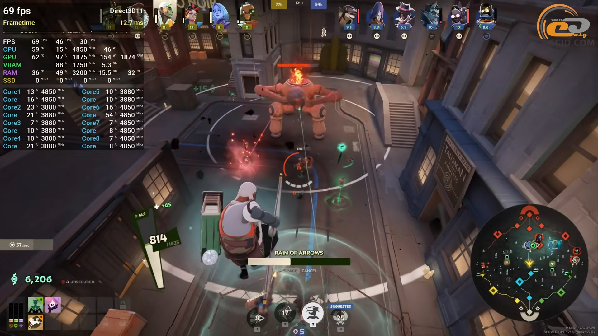 Викрутивши усе на максимум у Deadlock є змога додати навіть DLAA згладжування задля отримання ще більш красивішої картинки. Проте навіть так відеокарта видає більш ніж конкурентоспроможні і достатні показники продуктивності навіть під час активних перепалок з великою кількістю використаних суперможливостей.