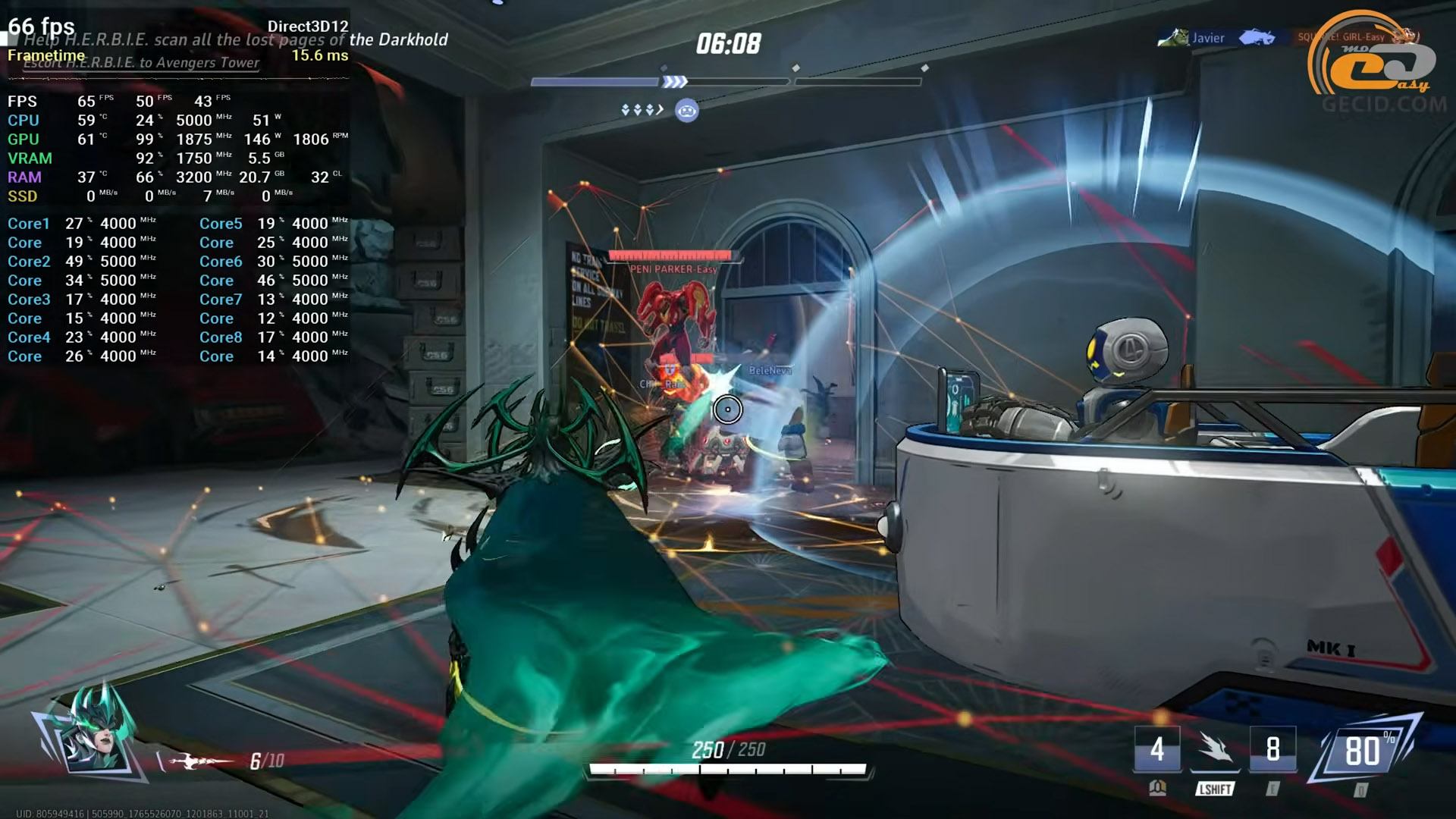 Супергеройський шутер Marvel Rivals непогано почувається на середніх налаштуваннях графіки, а щоб картинка виглядала більш привабливою можна навіть додати DLAA згладжування. Незважаючи на це, отримуємо стабільно за 60 кадрів на секунду з некритичними просіданнями під час масового використання здібностей в бою, позбутись яких можна через зниження вибіркових налаштувань чи вмикання DLSS в режимі мксштабування, і після цього сфокусуватися на сухому результаті.