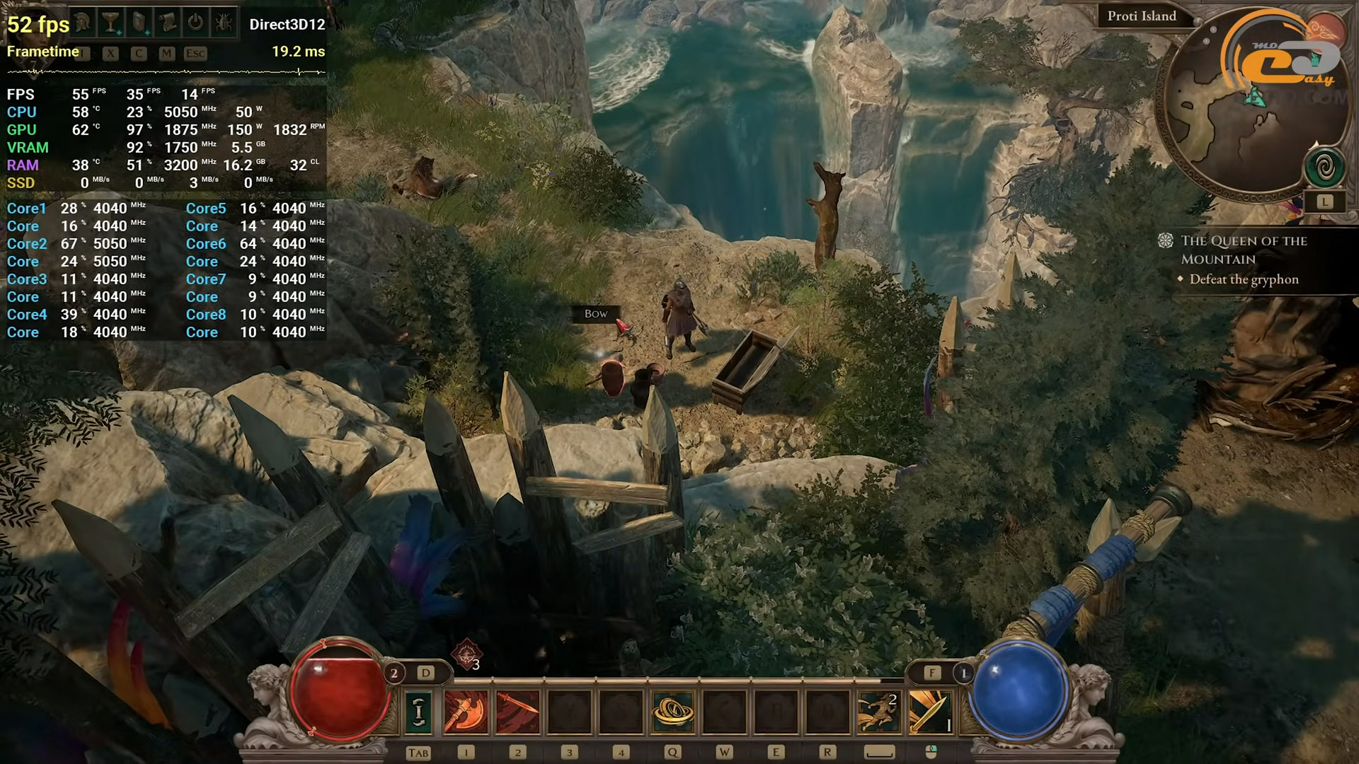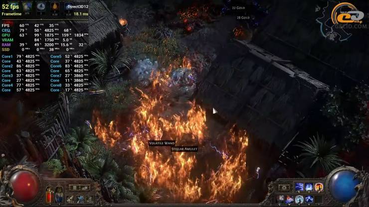 В Екшн-RPG Path of Exile 2 можна грати при усіх налаштуваннях викручених на високі. Такий вибір дозволить отримати приблизно 60 кадрів за секунду з невеликим просіданнями або навпаки інколи побачити доволі приємні значення, в залежності від кількості ефектів та досліджуємої локації. Моменти втрати FPS не завжди відчуваються критичними але при бажанні їх можна уникнути через погіршення глобальної якості картинки або через переведення режиму масштабування у більш агресивні, ніж якісний, режими.