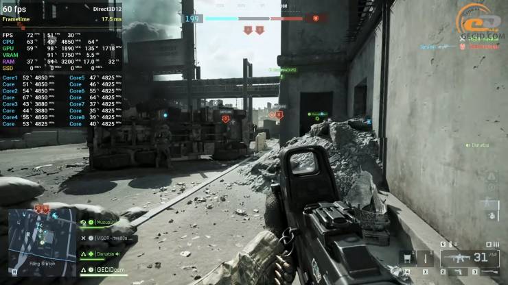 У шостій частині Battlefield відеокарті вже стає простіше і сміливо можна викручувати усе до високих налаштувань графіки. Об’єму відеобуферу повністю вистачає, навіть під час великої кількості ефектів під час битви між двома командами і тому картинка має змогу завжди оновлюватися більше ніж 60 разів за секунду, а іноді навіть підстрибувати до більш високих значень.