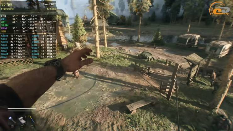 Dying Light: The Beast, за бажанням, можна запустити і на високих налаштуваннях графіки. Але, піддослідна відеокарта дуже важко витягує їх і тому навіть з допомогою збалансованого DLSS стикається з нестачею відеопам’яті, тож до і так невисоких значень FPS додаються доволі неприємні посмикування.