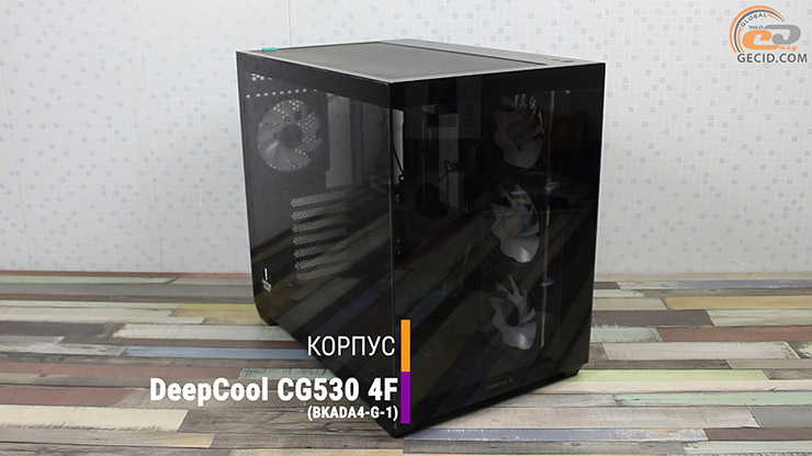 Встановлені усі компоненти разом у сучасний ATX-корпус DeepCool CG530 4F з панорамними скляними панелями та двокамерним розташуванням, що забезпечує акуратне компонування та ефектний вигляд. У комплекті йдуть чотири ARGB-вентилятори, завдяки чому вже з коробки ми отримуємо якісну циркуляцію повітря.