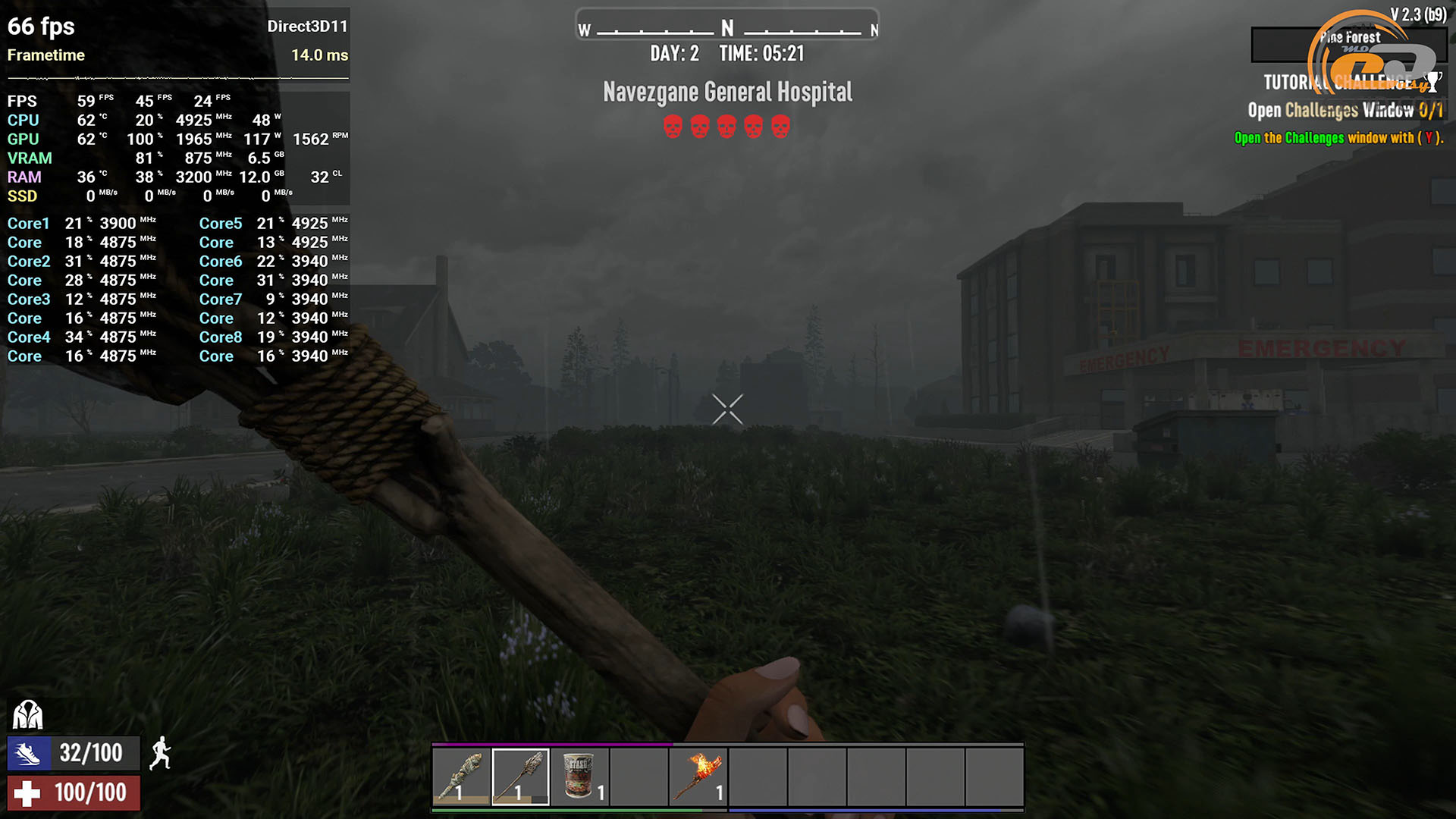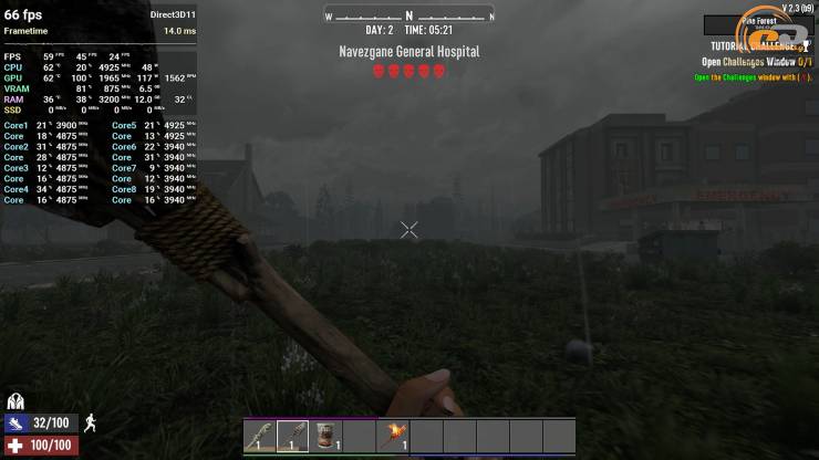 Починаємо з позитиву, адже 7 Days to Die досить бадьоро запускається навіть на ультра налаштуваннях і грається абсолютно комфортно. Подеколи, пробігаючи через густу рослинність, можна побачити невеличкі просідання рівня FPS. Також варто відмітити наявність періодичних посмикувань, які притаманні цій грі з ультра графікою майже на усіх системах з різними показниками продуктивності. Проте критичного впливу на ігролад через це не простежується.
