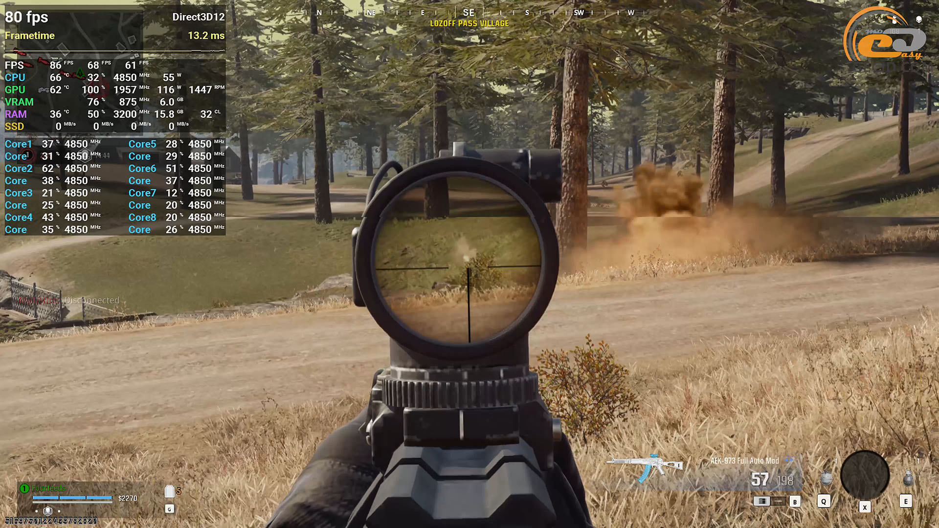 Ігровий досвід в Call of Duty: Warzone на ультра налаштуваннях разом із допомогою апскейлеру надав не дуже приємні емоції — загальна картина була задовільною, проте постійно були критичні посмикування. Тож у відповідальний момент головним ворогом можуть стати саме вони, а не гравець перед вами. Спустившись до збалансованого пресету графіки усе стало чудово і плюсом також додалася можливість грати у нативній та повністю недоторканій картинці з достатнім запасом FPS.