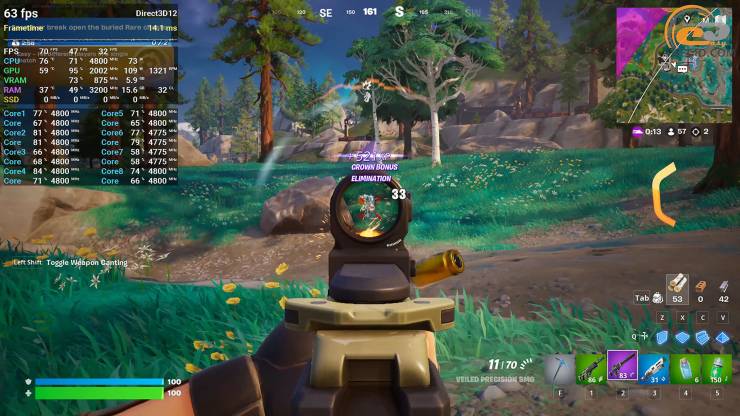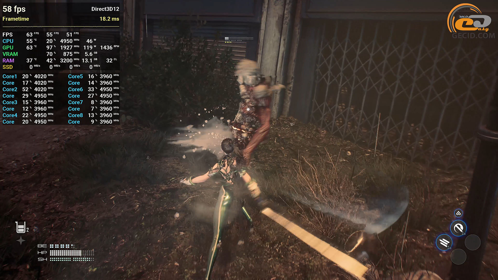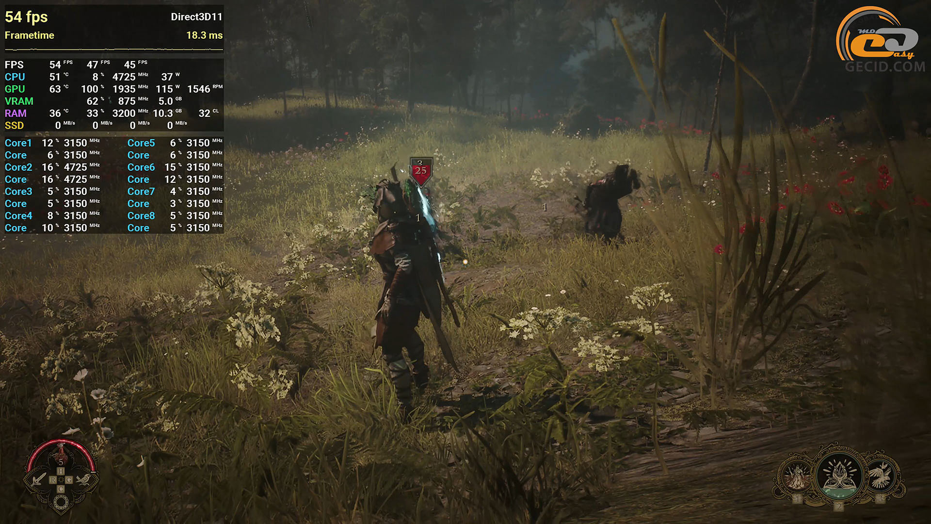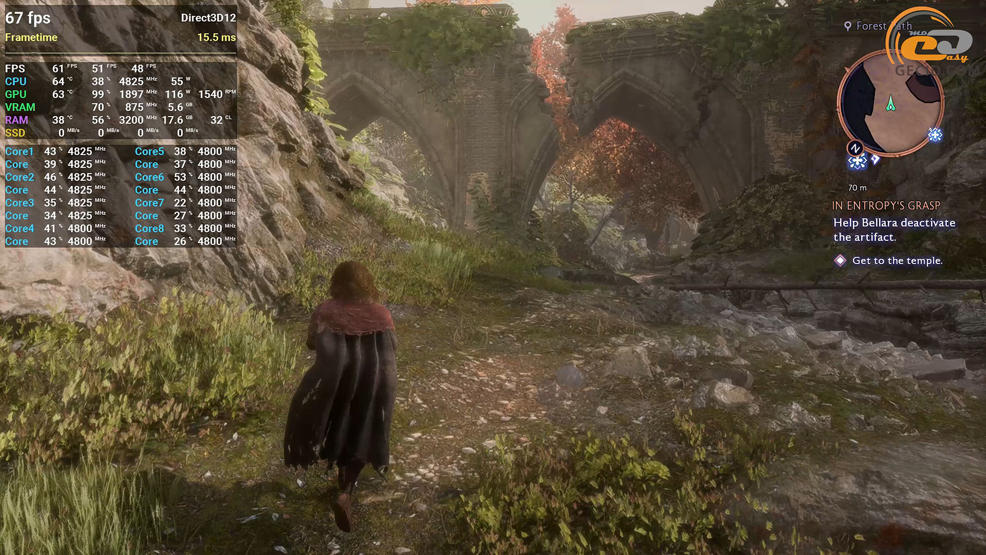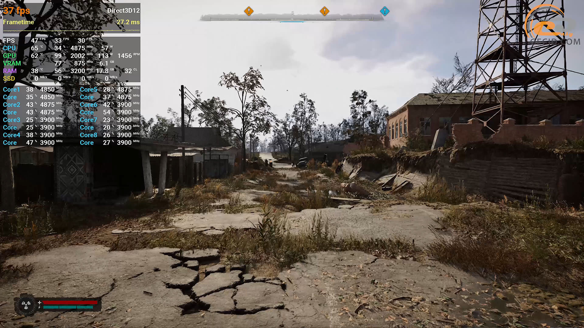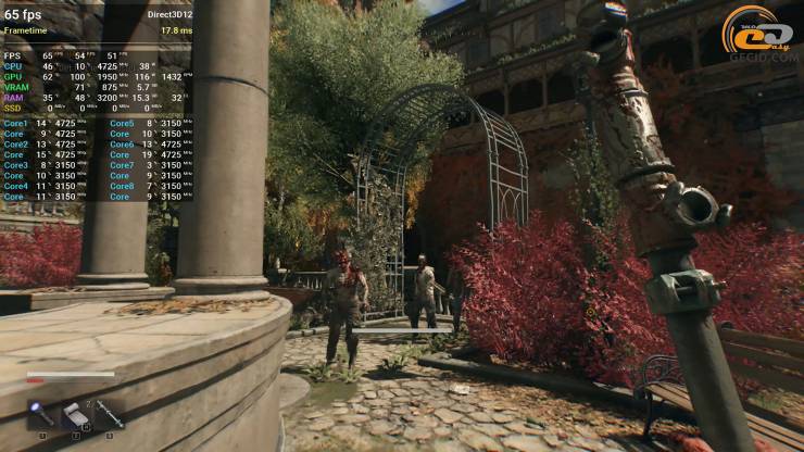 Проте гра надає можливість застосувати генерацію кадрів алгоритмами FSR, яка доступна на будь-яких відеокартах. Після таких маніпуляцій, судячи по показникам, ми отримуємо майже вдвічі покращений показник FPS, але насправді гра відчувається чимось середнім між попереднім тестом та показниками моніторингу. Однак затримки під час керування або просідання FPS більше не будуть заважати отримувати максимум задоволення від легендарного проекту.