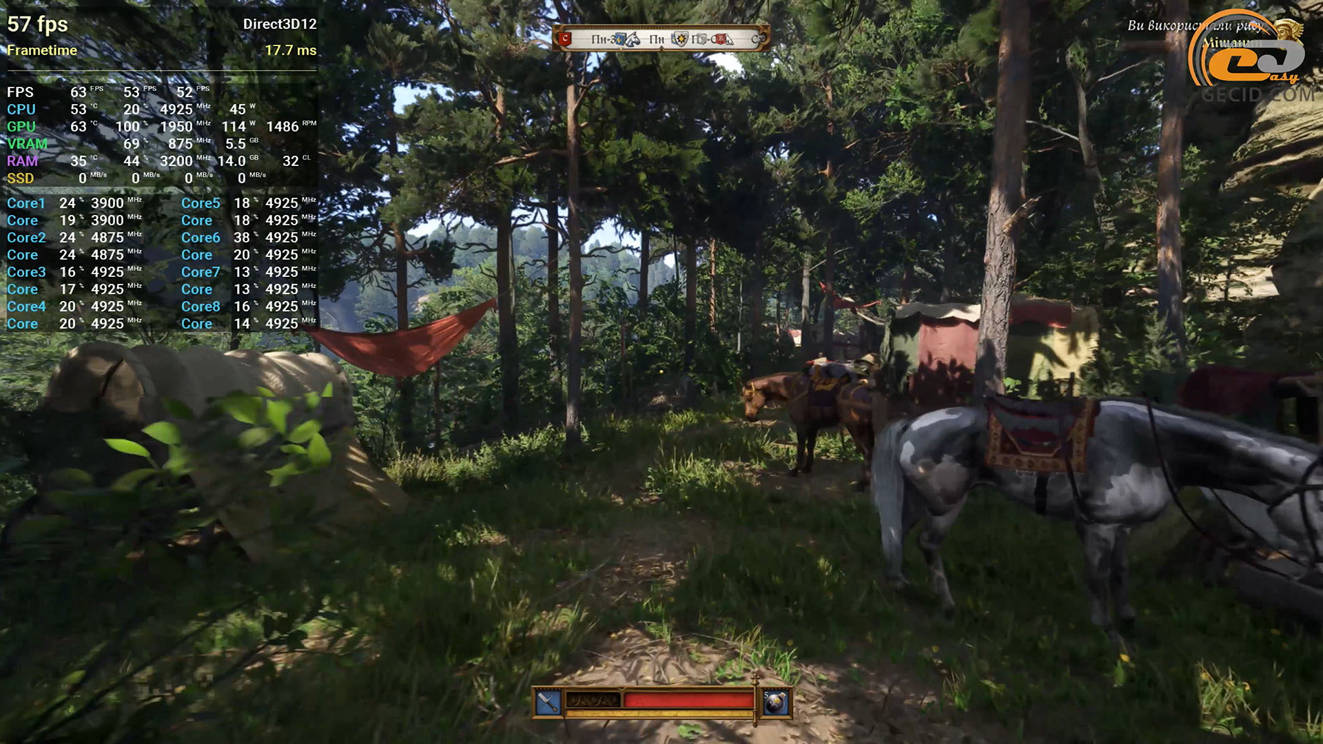 Подорожувати густими лісами Kingdom Come Deliverance II можна на високому пресеті графіки при якісному DLSS з однозначно приємними враженнями, схожими до Hunt Showdown. Так, коли заходимо до табору з великою кількістю NPC зустрічаються просідання нижче 60 FPS, але у свою чергу вони зовсім не відчуваються критичними. Звісно за бажанням не переживати з цього приводу можна знизити деякі налаштування.