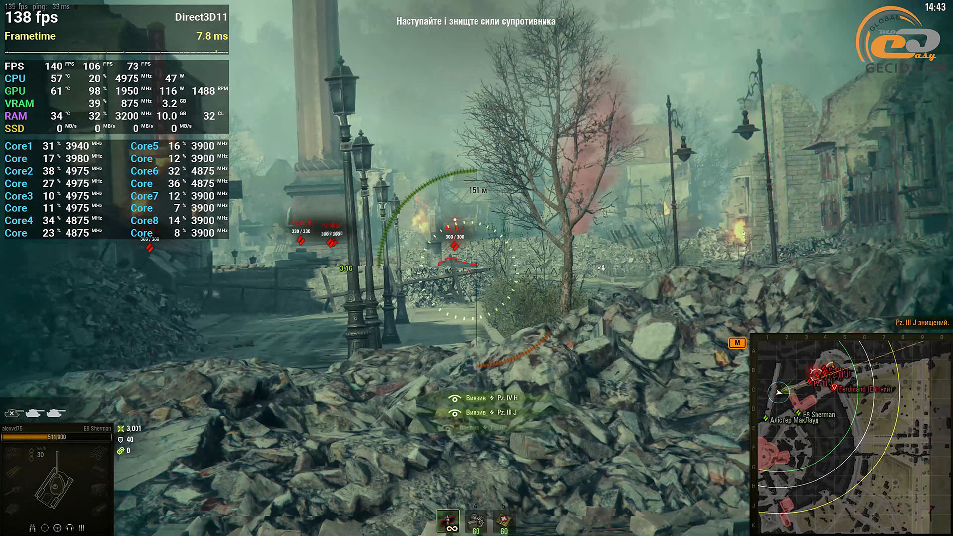 Наостанок перевірили продуктивність у нещодавно оновленій World of Tanks 2.0. Тут навіть на ультра налаштуваннях не виникає ніяких питань щодо можливостей RTX 3050 долати ігри такого рівня. Тож бачимо ідеальний результат як на моніторингу так і в реальності.