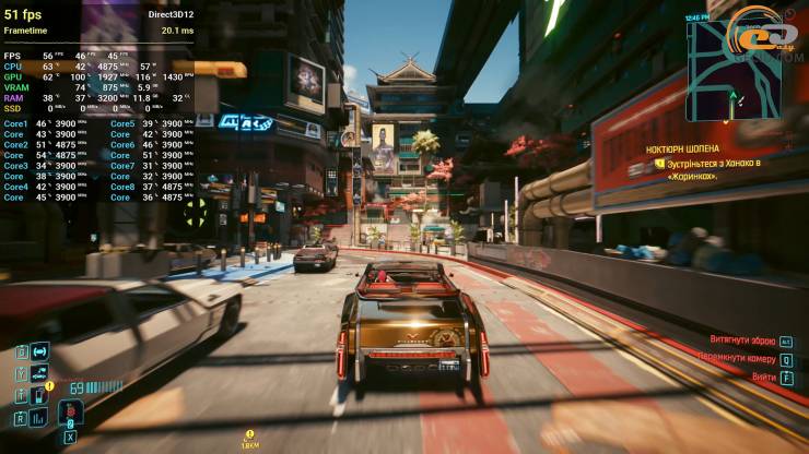 Після великої кількості оновлень і оптимізації в Cyberpunk 2077 можливостей відеокарти вистачає навіть на ультра пресет графіки, якщо зовсім не пробувати активувати трасування променів. А після додавання якісного режиму DLSS подорож неоновим містом стає досить приємною, незважаючи на подеякі просідання частоти кадрів нижче 60-ти FPS.