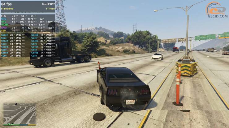 Також оновлена версія Grand Theft Auto V для цієї бюджетної відеокарти не стає перешкодою навіть після застосування пресету графіки Very High RT. У центрі міста картинка оновлюється приблизно 75 разів за секунду, та й коли заїжджаємо в район густої рослинності ігролад залишається доступним, хоча і втрачаємо деяку частину FPS та з’являється невеличке відчуття інпутлагу під час керування.