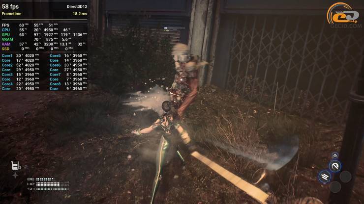 У менш вимогливий слешер Stellar Blade можна бігати на високих налаштуваннях графіки і навіть із доданням DLSS у режимі покращеного згладжування. При цьому частота кадрів ніколи не опускається до неприємних значень і ніщо не відволікає від шинкування космо-жуків.