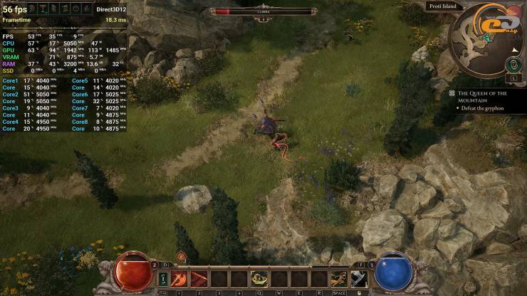 Вийде пограти і у «зелену» Active-RPG Titan Quest II на середніх налаштуваннях графіки разом із якісним DLSS. Подеякі просідання частоти кадрів або незначні посмикування під час активних подій інколи намагаються погіршити враження від геймплею, але насправді вони майже непомітні. А якщо згодом монстрів та ефектів стане більше, то можливість знизити налаштування або підвищити агресивність апскейлінгу завжди буде актуальною.