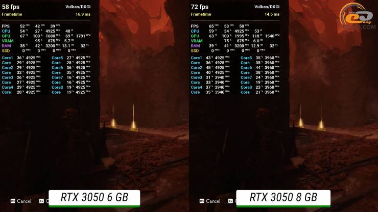 NVIDIA GeForce 3050 6 GB vs 8 GB