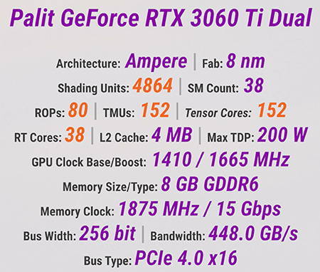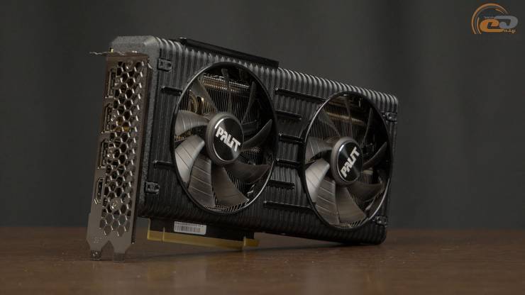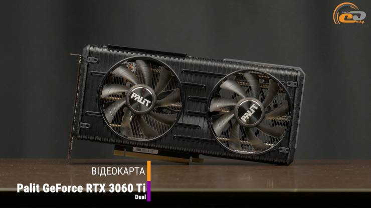 Детально дивитися на можливості піддослідного будемо на прикладі відеокарти Palit GeForce RTX 3060 Ti Dual, яка виділяється яскравим RGB-підсвічуванням, що підкреслює сотоподібну задню панель.