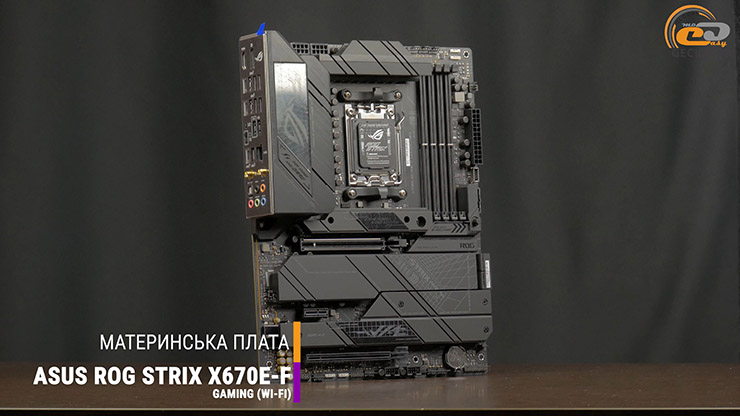 Працює цей процесор в надійній і ще досить актуальній материнський платі ASUS ROG STRIX X670E-F GAMING (WI-FI).