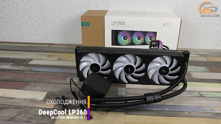 За охолодження процесору відповідає 360-мілімітрова система рідинного охолодження DeepCool LP360, в основі якої лежить високоефективна помпа з робочою швидкістю до 3400 об/хв. Вона забезпечує стабільний відвід тепла навіть під максимальним навантаженням. А три 120-мм вентилятори на гідравлічних підшипниках працюють зі швидкістю до 2400 об/хв, створюючи потужний повітряний потік. А завдяки ARGB-підсвічуванню вони ще й додають системі сучасного вигляду.