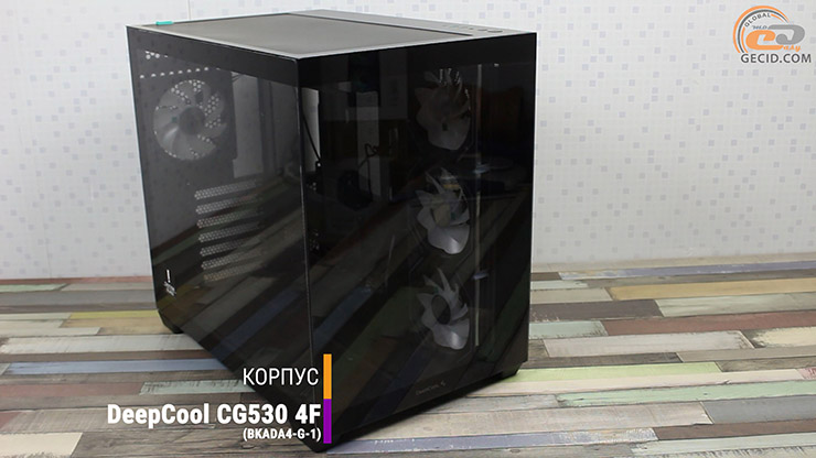 Всі ці компоненти розміщені у стильному ATX-корпусі DeepCool CG530 4F. Його панорамні скляні панелі дозволяють милуватися начинкою, а двокамерне компонування спрощує кабель-менеджмент. У комплекті одразу йдуть чотири ARGB-вентилятори, тож навіть без додаткових апгрейдів ми отримуємо якісну циркуляцію повітря. За бажанням корпус дозволяє встановити ще кілька «вертушок» або навіть додатковий радіатор для рідинної системи охолодження, що робить його хорошим варіантом для подальших апгрейдів.