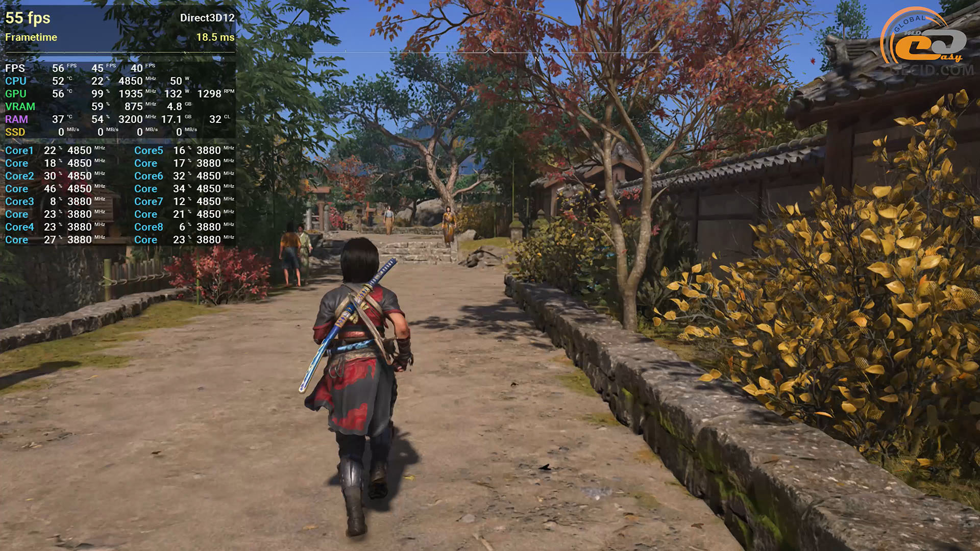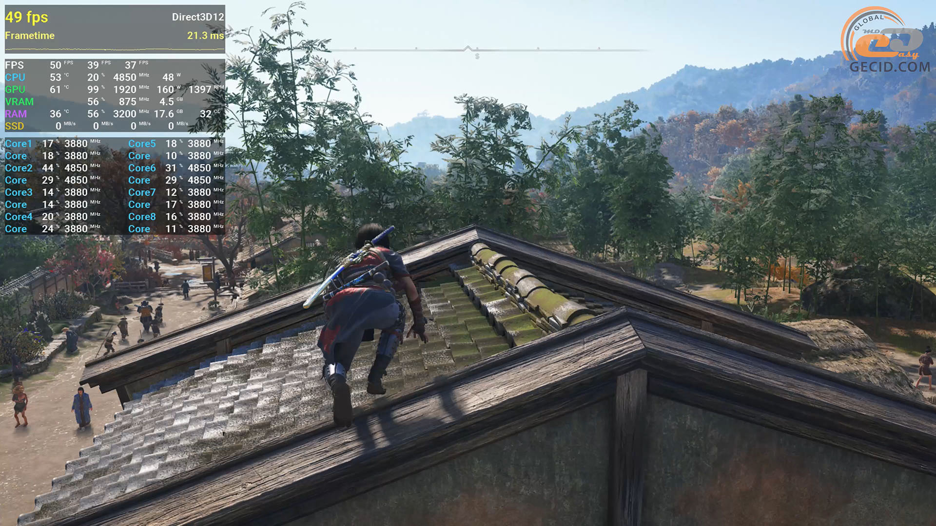 А от новенька Assasin’s Creed Shadows стає важкою задачею для RTX 3060 Ti навіть на середніх налаштуваннях графіки. Маємо нестабільні 50 FPS в середньому з частими просіданнями й до критичніших значень у більш важких локаціях.