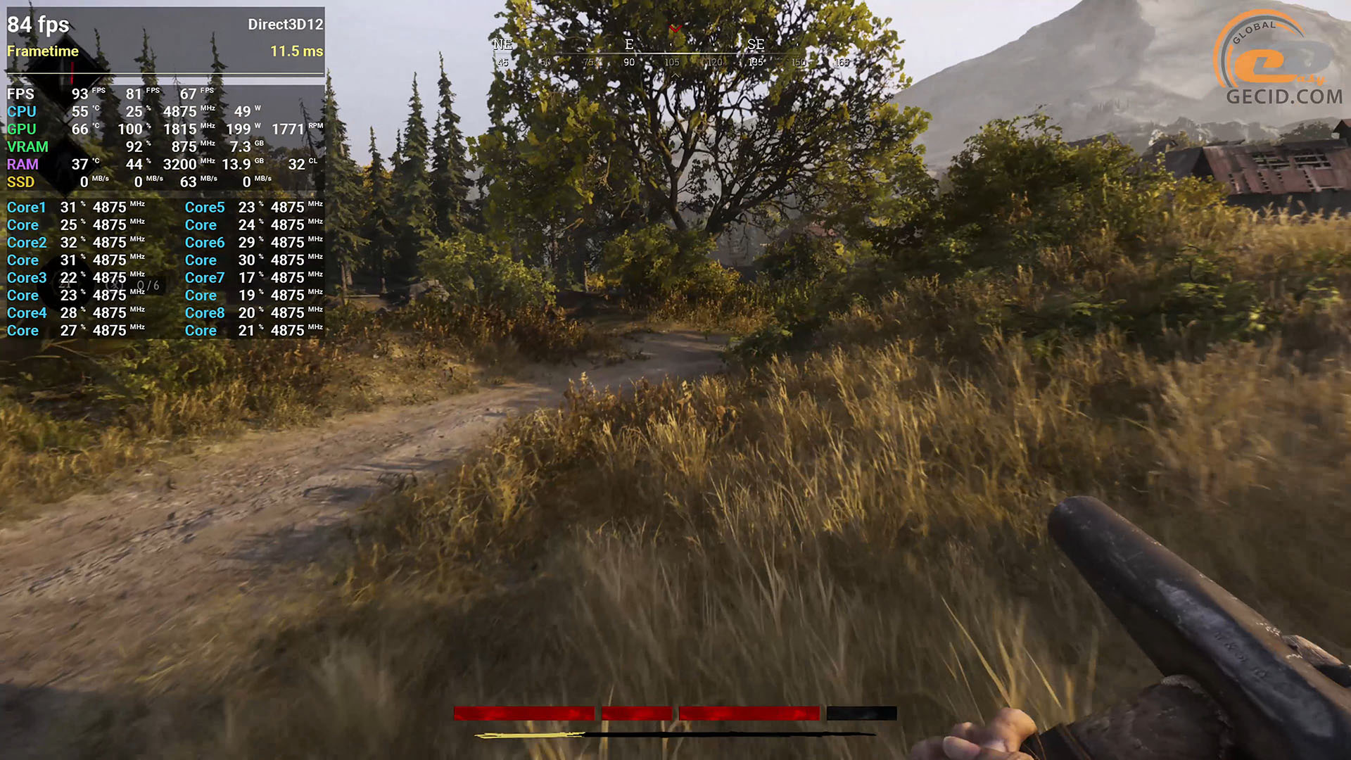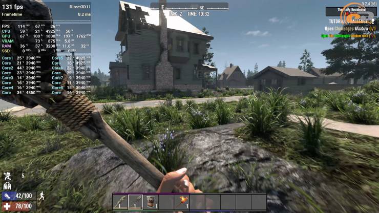 Розпочинаємо з 7 Days to Die, яка у свою чергу навіть на ультра налаштуваннях з покращеним DLAA згладжуванням грається абсолютно комфортно. Варто відмітити наявність періодичних підгальмовуваннь, які є притаманною проблемою для цієї гри на ультра графіці. Проте критичного впливу на ігролад через це не простежується.
