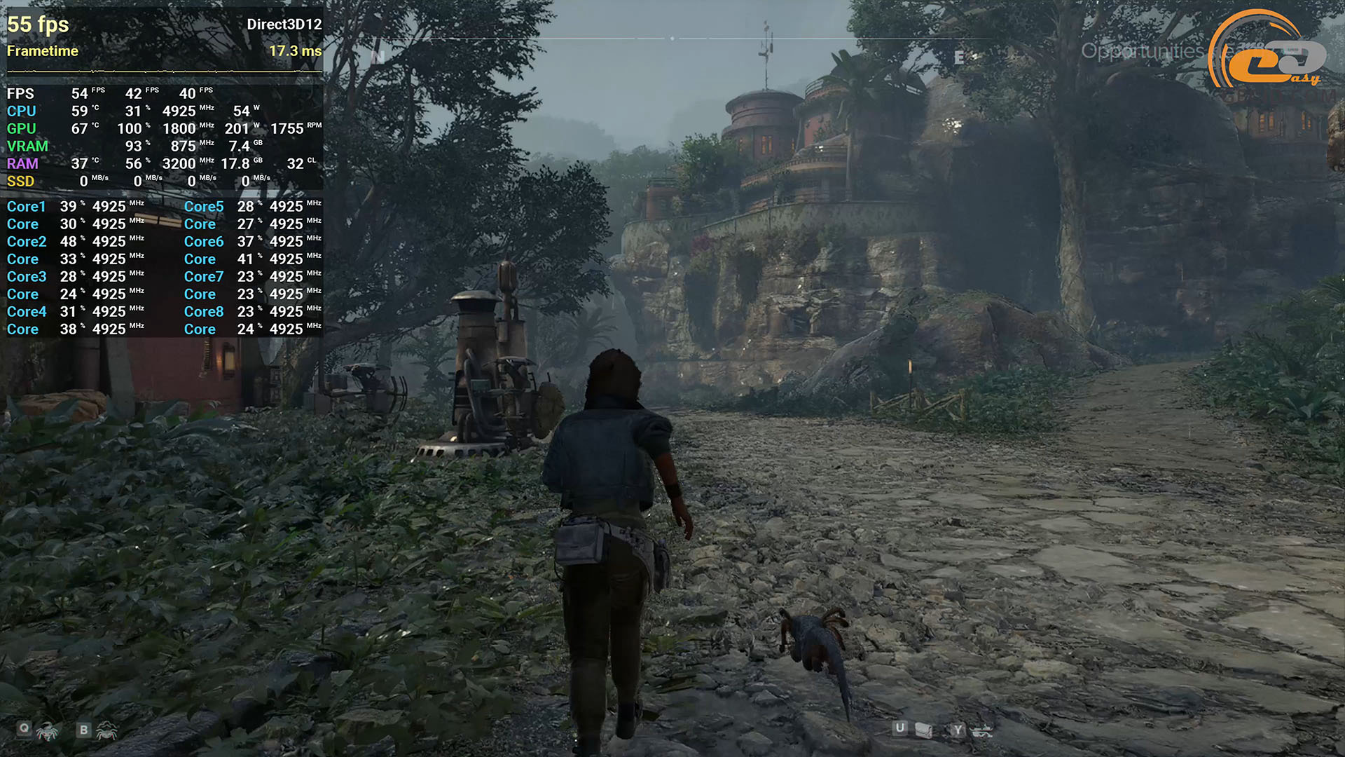 Продовжувати історію Кайла Крейна в Dying Light: The Beast наша героїня дозволяє на максимально доступному зараз пресеті графіки з майже стабільною частотою оновлення екрану 60 разів за секунду. Тож у новинці результат досить приємний. Цікаво наскільки ситуація погіршиться із доданням обіцяного рейтрейсінгу до гри у наступних оновленнях.