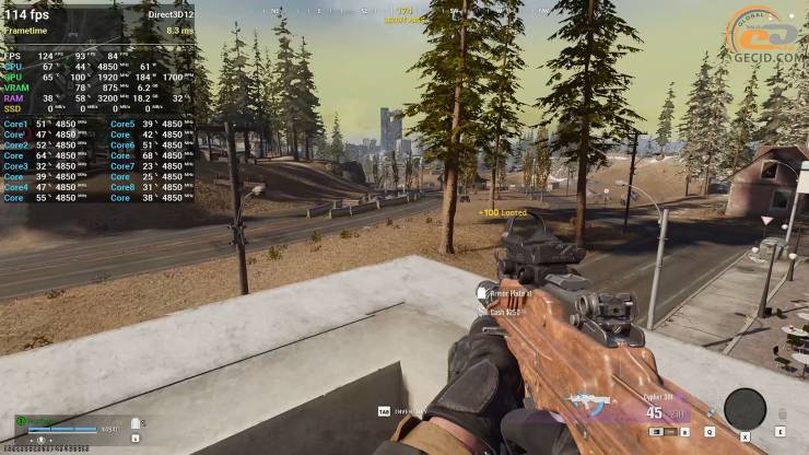 Завдяки невисокій вимогливості гри процес боротьби за перемогу у Call Of Duty: Warzone є повністю задовільним на збалансованій якості зображення з додатковим DLAA згладжуванням. Навіть велика кількість об’єктів чи рослинності на екрані не заважають мати коло 125 FPS, а в закритих та більш простих локаціях буде ще більше. Проте протестувати продуктивність на вищих налаштуваннях ніяк не вийшло, бо гра наполегливо відмовляється запускатися з важчими пресетами графіки. Тож можливо це локальна проблема або »щось зламалося» після останніх оновлень. Хоча теоретично піддослідна відеокарта повинна долати і екстремальні налаштування.