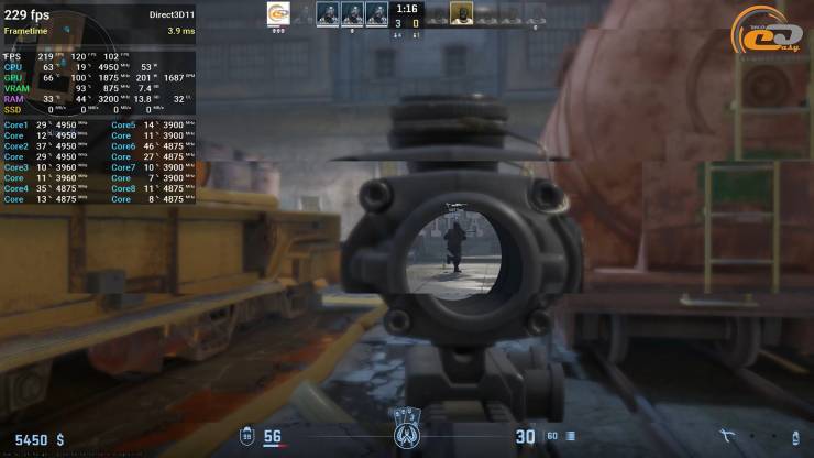 Запустивши Counter Strike 2 на найважчій наразі мапі зі змагального пула ми не побачили проблем, бо навіть на дуже високих налаштуваннях маємо загалом більше 200 FPS і лише при пересуванні через хмари від димових гранат частота кадрів трохи знижується, але залишається абсолютно достатньою. А якщо зробити акцент на результаті та трохи знизити налаштування, то можна отримати ще кращі показники.